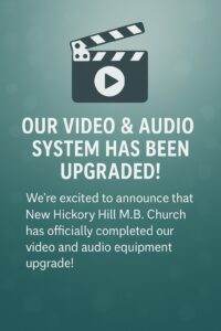 We’re excited to announce that New Hickory Hill M.B. Church has officially completed our video and audio equipment upgrade!